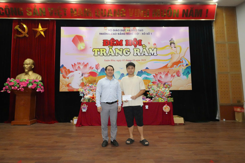 Hòa chung không khí vui tươi của thiếu nhi cả nước hướng tới Tết Trung thu, tối ngày 3/10/2025, Đoàn Trường Cao đẳng nghề Việt – Xô số 1 đã tổ chức chương trình “Đêm hội Trăng rằm” cho các cháu thiếu niên, nhi đồng là con em cán bộ, giáo viên, nhân viên và học sinh, sinh viên của nhà trường.