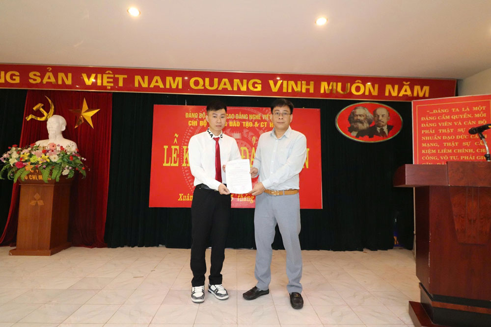Phát biểu giao nhiệm vụ, đồng chí Bí thư Chi bộ nhấn mạnh: Việc kết nạp đảng viên là sinh viên thể hiện sự quan tâm của Đảng bộ Nhà trường trong công tác phát triển Đảng, đặc biệt là trong lực lượng đoàn viên, thanh niên. Đồng chí đề nghị các đảng viên mới tiếp tục giữ vững bản lĩnh chính trị, phát huy vai trò tiên phong, gương mẫu trong học tập, rèn luyện và công tác; đồng thời không ngừng học hỏi, nâng cao nhận thức lý luận, xứng đáng với niềm tin của tổ chức Đảng và tập thể Nhà trường.
