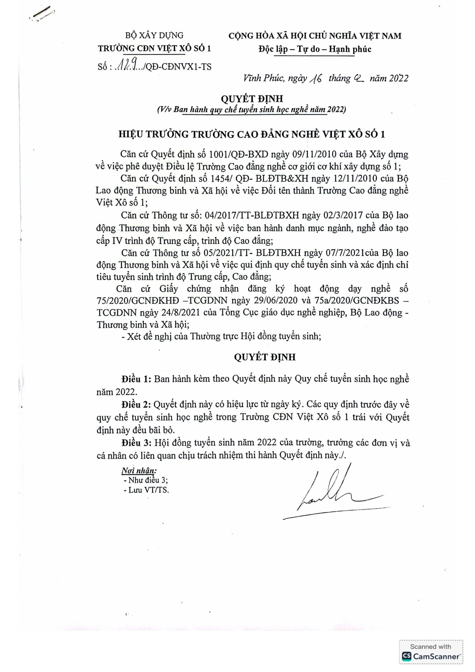 Quyết định và Quy chế tuyển sinh năm 2022-2023