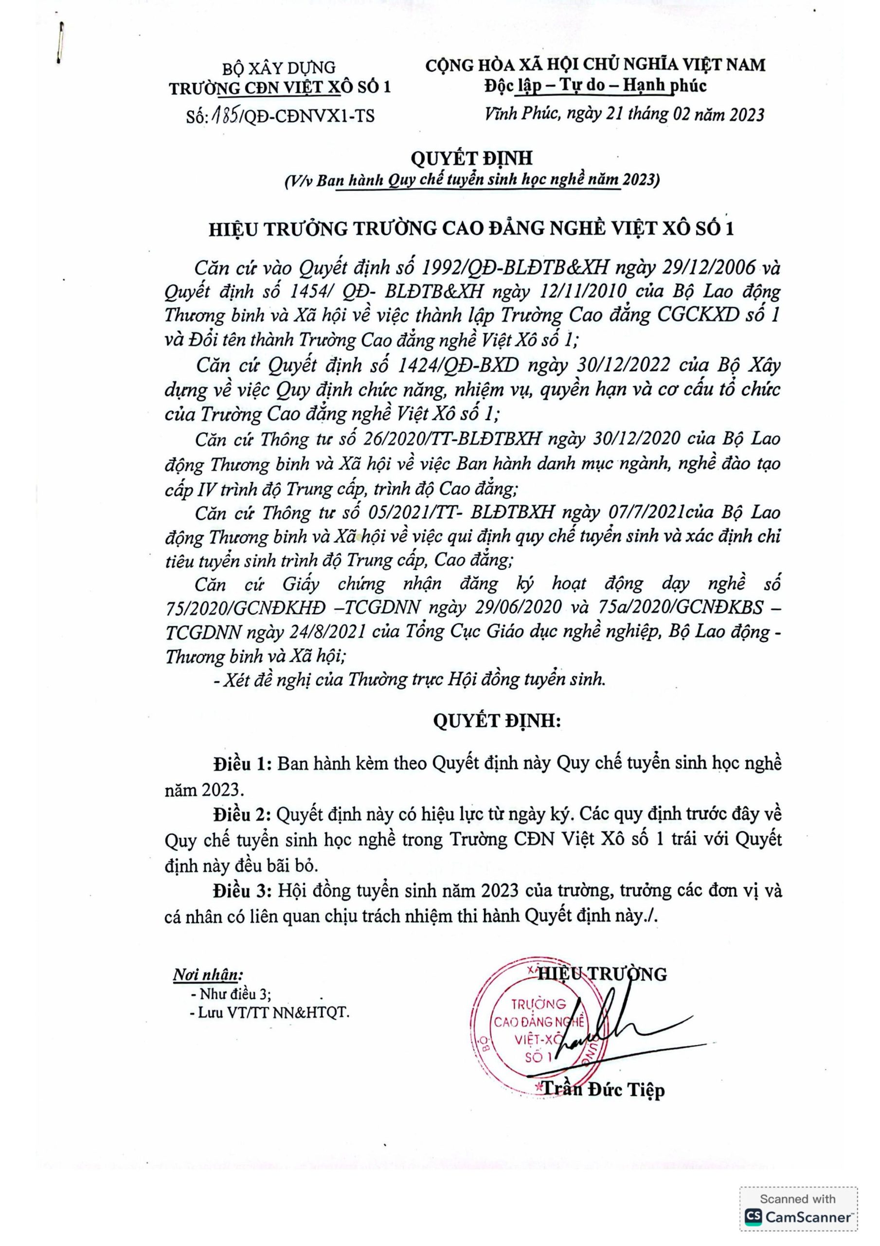 Quyết định và Quy chế tuyển sinh năm 2022-2023