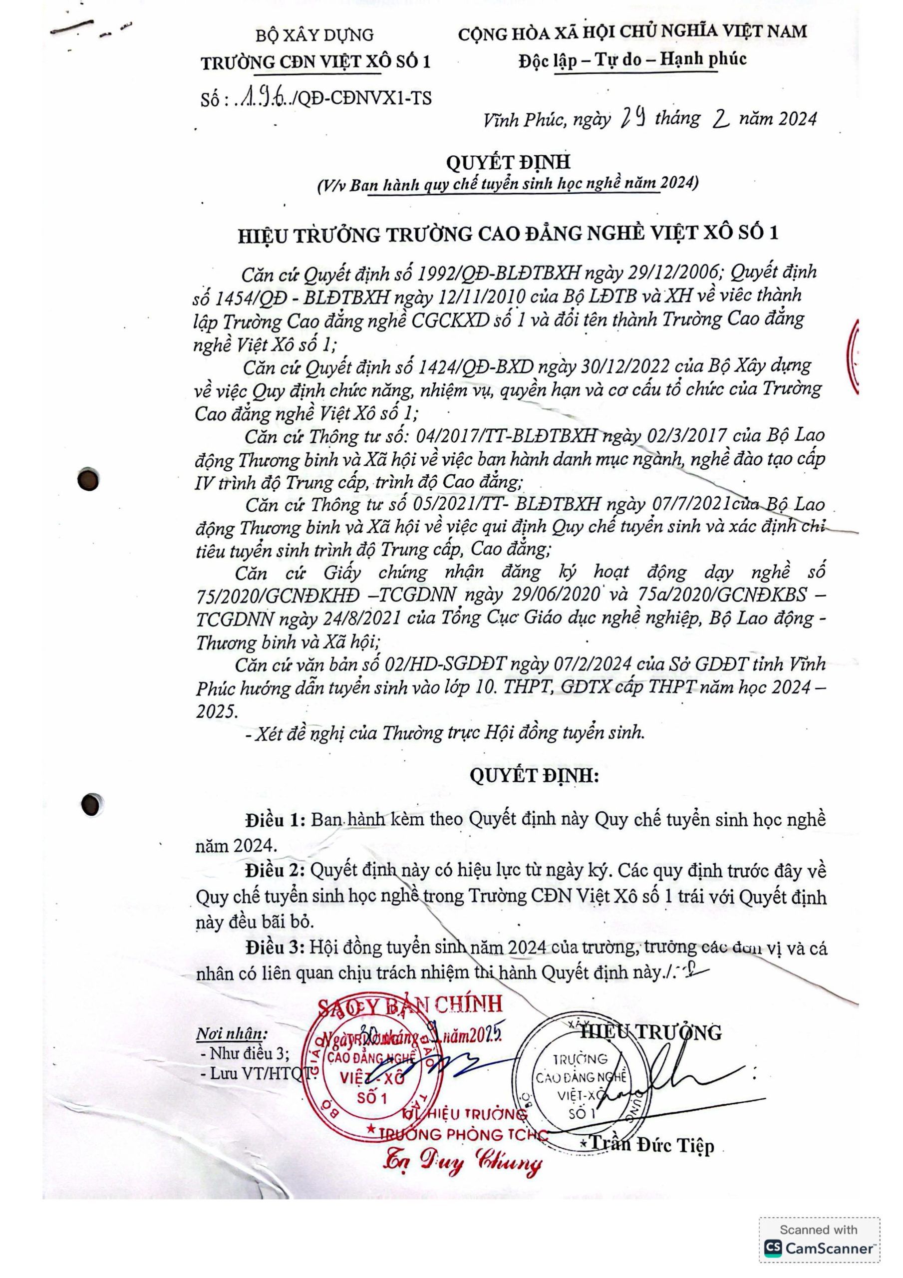 Quyết định và Quy chế tuyển sinh năm 2024-2025