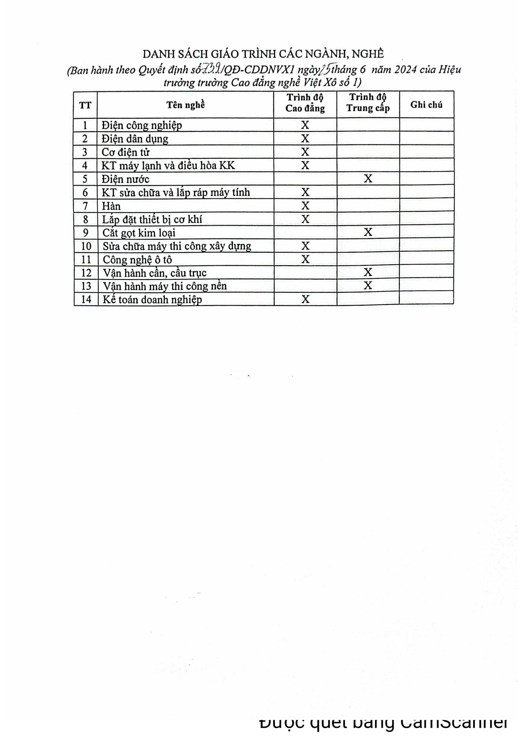 Quyết định ban hành chương trình đào tạo trình độ Trung cấp, Cao đẳng, Liên thông năm 2025