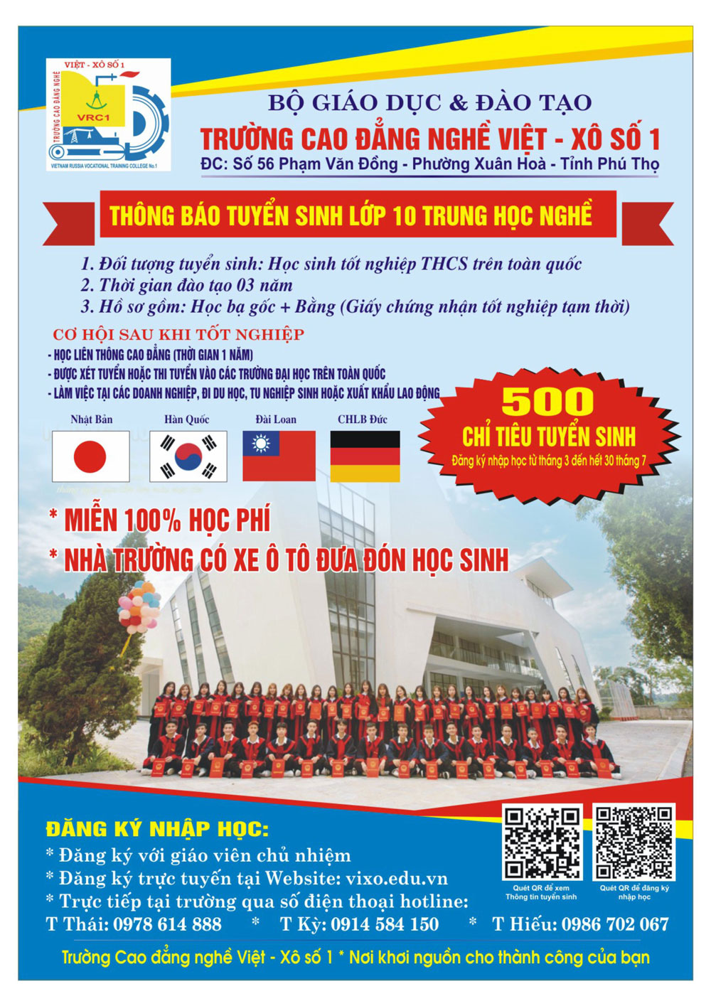 Thông tin tuyển sinh lớp 10 Trung học nghề – Trường Cao đẳng nghề Việt – Xô số 1