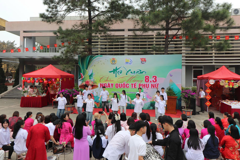Chiều ngày 06/3/2026, Trường Cao đẳng nghề Việt – Xô số 1 đã tưng bừng tổ chức Hội Xuân 2026 nhằm chào mừng Kỷ niệm 116 năm Ngày Quốc tế Phụ nữ 8/3 (08/3/1910 – 08/3/2026). Chương trình diễn ra trong không khí vui tươi, ấm áp, tạo nên một ngày hội ý nghĩa dành cho toàn thể cán bộ, viên chức, người lao động và học sinh sinh viên nhà trường.