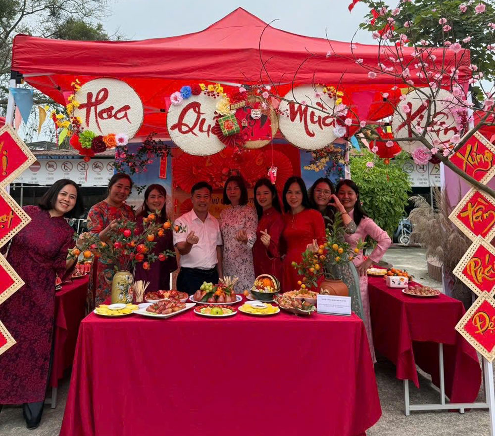 Bên cạnh các hoạt động giao lưu và trò chơi vui nhộn dành cho nữ cán bộ, viên chức và nữ học sinh sinh viên, Hội Xuân 2026 còn có sự tham gia của 11 gian hàng đến từ các tổ nữ công và nữ HSSV trong toàn trường. Mỗi gian hàng mang một màu sắc riêng với nhiều chủ đề phong phú như: “Chè mát bốn mùa”, “Ẩm thực Việt – Hàn”, “Xôi ngũ sắc”, “Bánh quê”, “Hoa quả mùa xuân”, … Các gian hàng không chỉ giới thiệu những món ăn truyền thống, hấp dẫn mà còn tạo nên không gian đậm sắc xuân, thu hút đông đảo cán bộ, viên chức và học sinh sinh viên tham quan, thưởng thức.